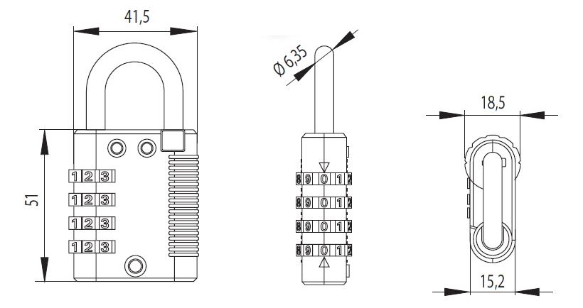 Combination Padlock, Black, 4 Digits, MK System (AP006)
