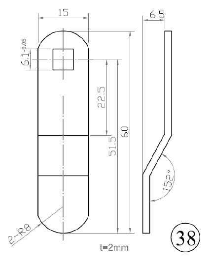 Cam No. 38 F/Combi Locks,Cranked 8,5mm,51,5mm C/E,Hole:6x6mm Fits for Locks M237/238/266/268/300/316/3001 & 3002