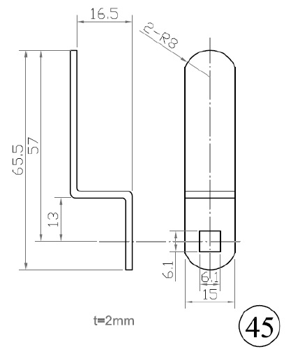 Cam No. 45 F/Combi Locks, Crank 18,5mm,48,5mm C/E,Hole:6x6mm Fits for Locks M237/238/266/268/300/316/3001 & 3002
