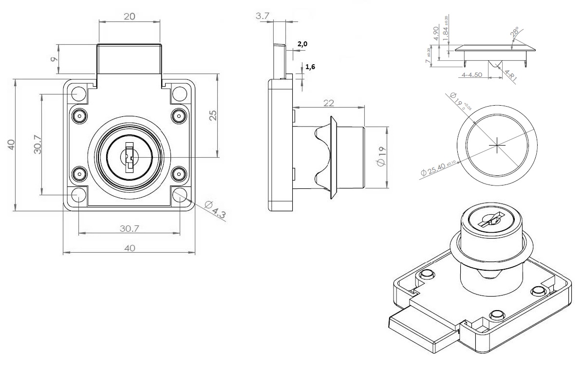 Rim Lock 850, ø19x22mm, Drawer, NPL, Trans. Flip CK SISO