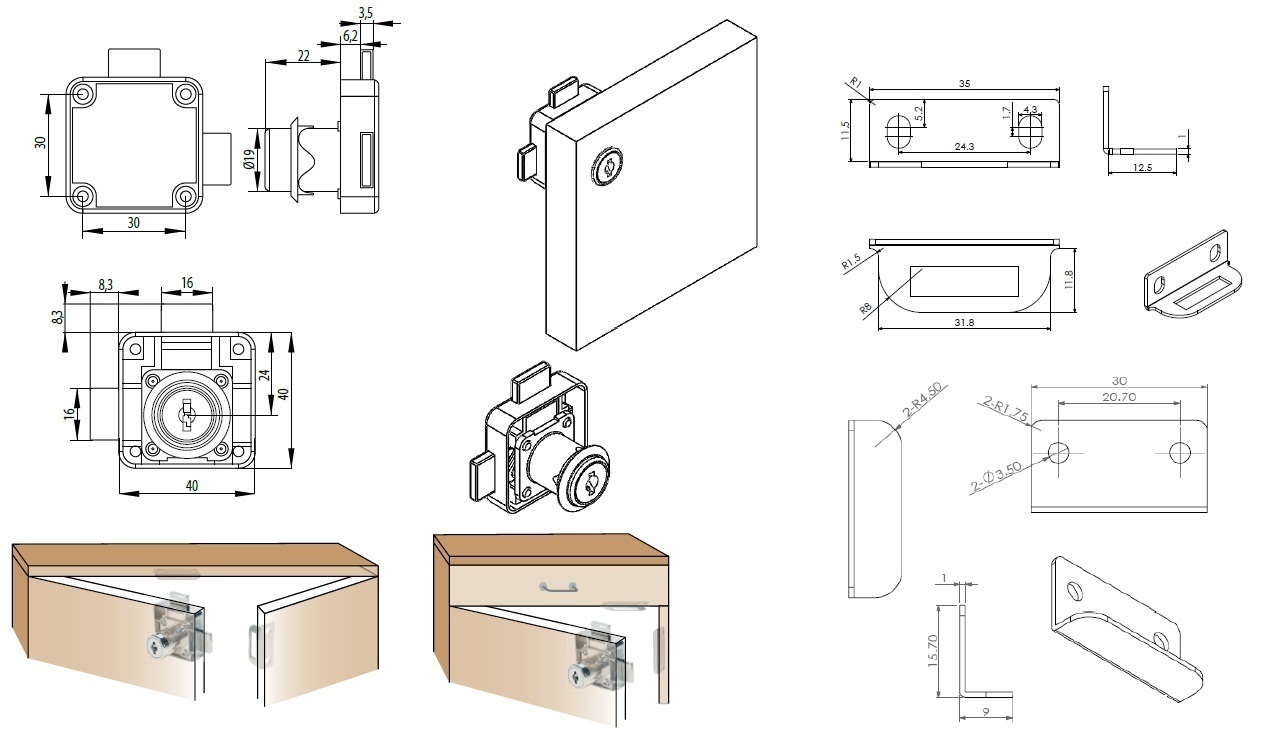 Rim Lock 850, ø19x22mm "R", Double Locking, CK SISO, KA D20, 2 L-Shaped Metal Strikers, Perfect F/Double Door Cabinets, Right Hand