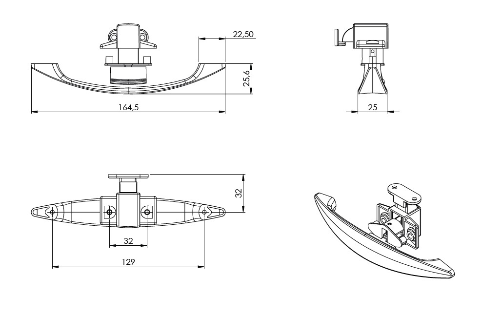 Bow Handle F/Lock 14.03.080, Zamak, cc: 128mm, Chrome Pl.
