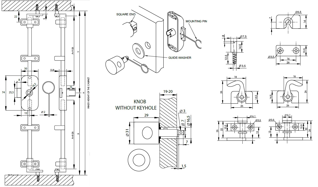 Rotary Bar Lock 925, W/Knob, No Key, NPL Zamak Back & Knob, NPL Zamak Accessories, No Bar
