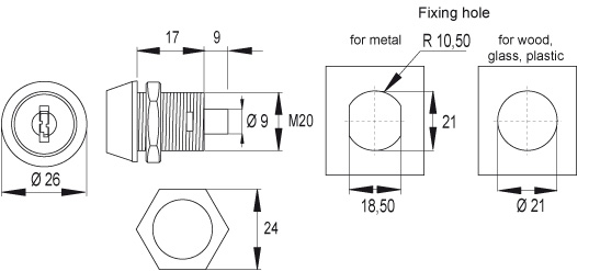 Push Lock "Budapest", ø19x19mm, NPL, W/Hex Nut, KA D20, CK SISO