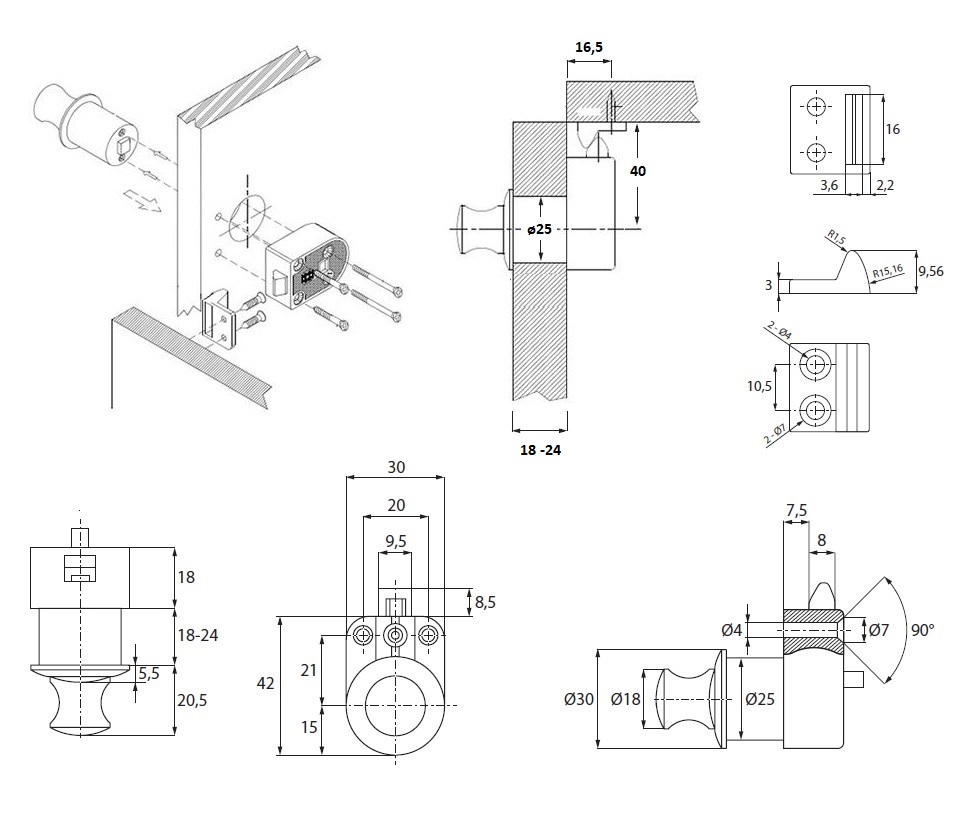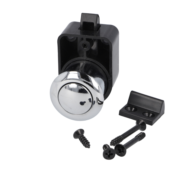 Push Lock "CAMP",F/18-24mm, CPL, Zamak Knob & Plastic Body - Black, Incl. Plastic Striker in Black & Fixing Screws, 2 Extra Screws F/Panel Thickness Extension ,W/Slam Function
